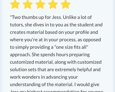 My value could be increased for providing students with rarely received, individually curated and copy-written, materials designed for each exam. Additionally, assessments are updated throughout each student's academic growth, and specific test-taking capabilities - ensure you don't simply memorize content, but understand it within in framing. With my balanced guidance, pacing lessons alongside your life events - you will know the answers without having to wait for the questions to be asked.