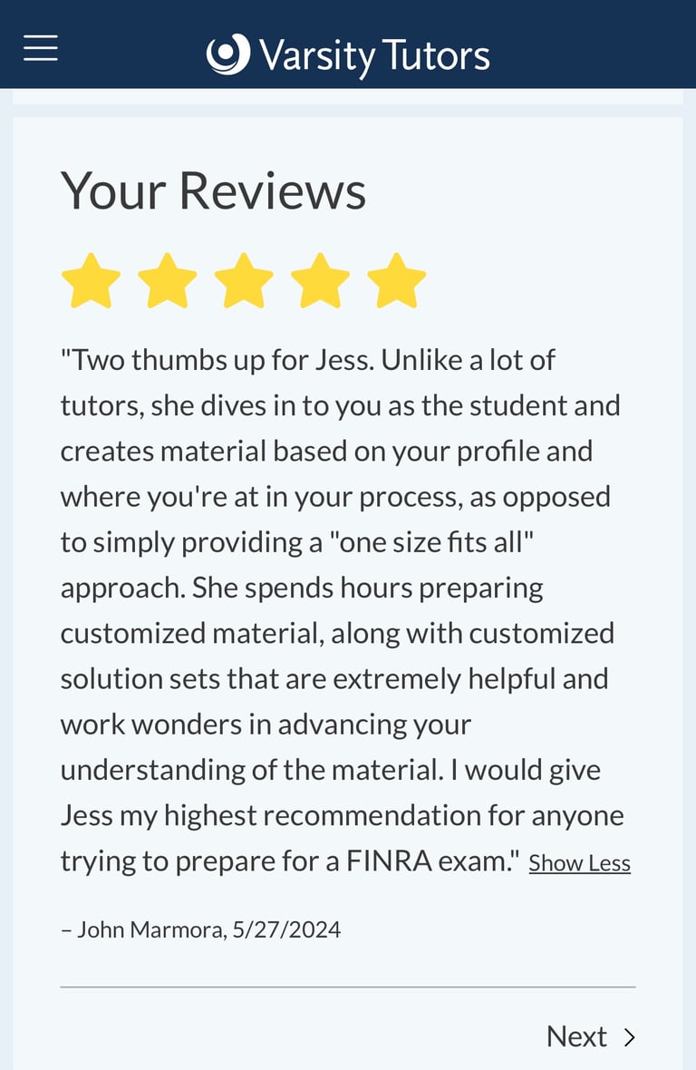 Customized online tutoring for financial exam success.